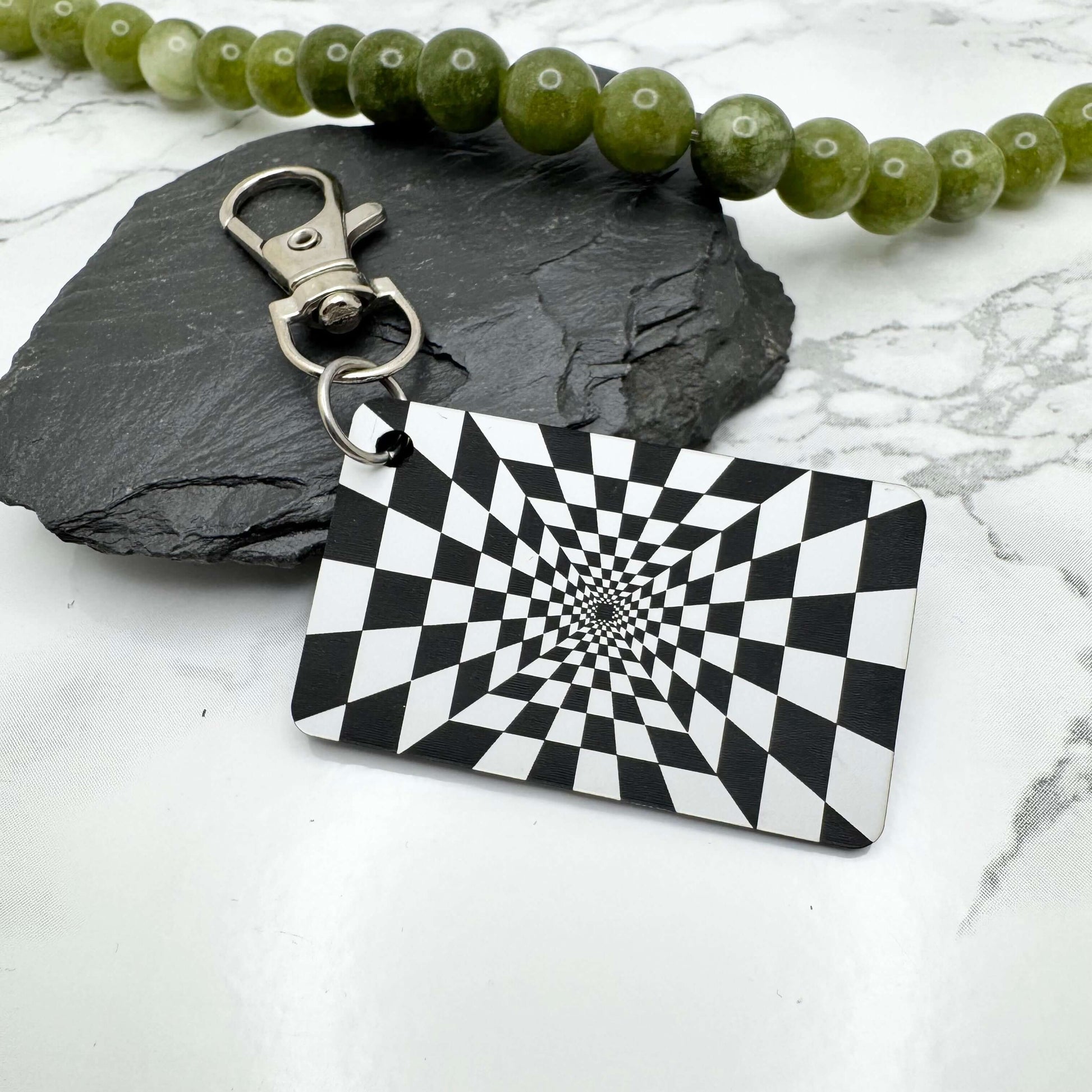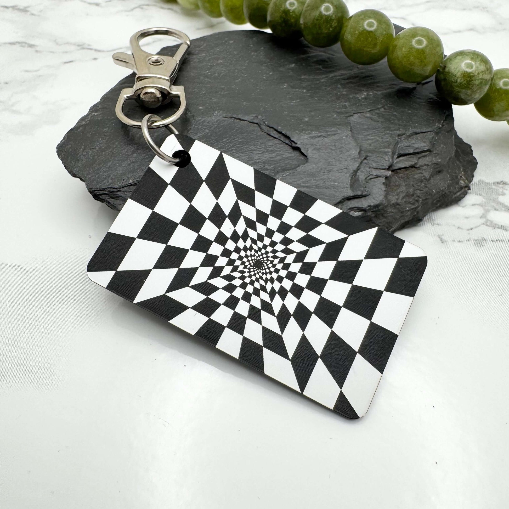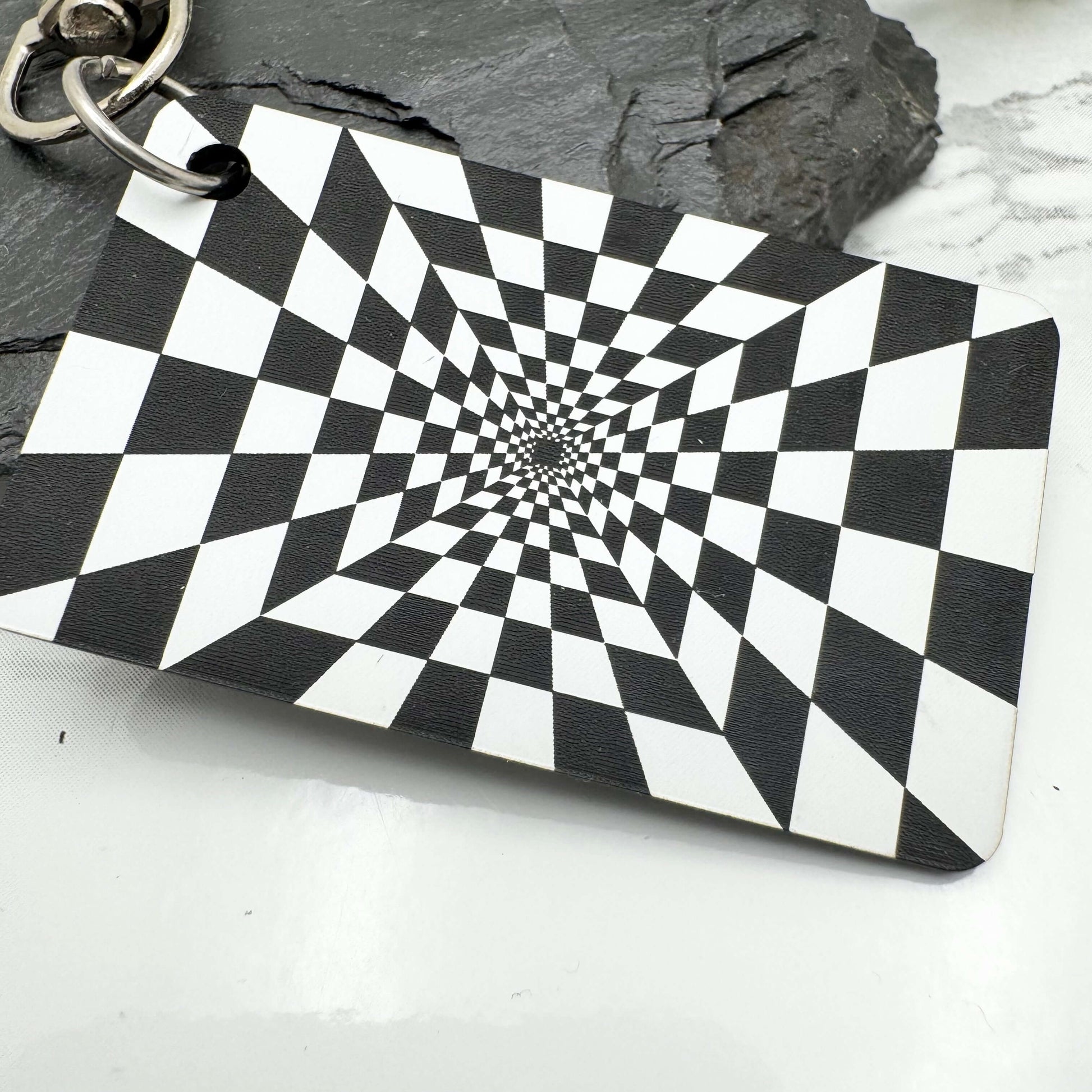 Optical Illusion Keyring | Black & White Spiral Vortex Design